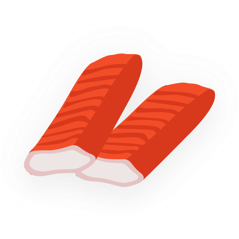 Imitation of crab meat, often used in California rolls. Sweet, soft, everyone loves it.